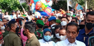 Warga berdesak-desakan menyambut Presiden Jokowi di pasar Ternate