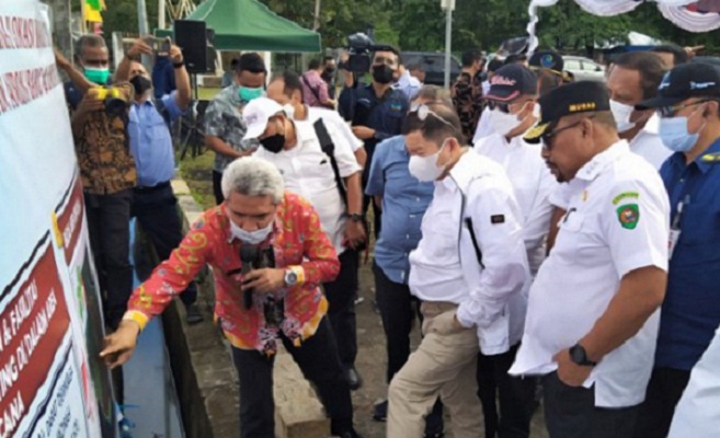 Didampingi Gubernur Maluku Murad Ismail, kedua Menteri mendapatkan penjelasan dari Kadis Perhubungan Maluku Mohammad Malawat tentang perencanaan pembangunan Ambon New Port A di atas lahan seluas 200 hektare.